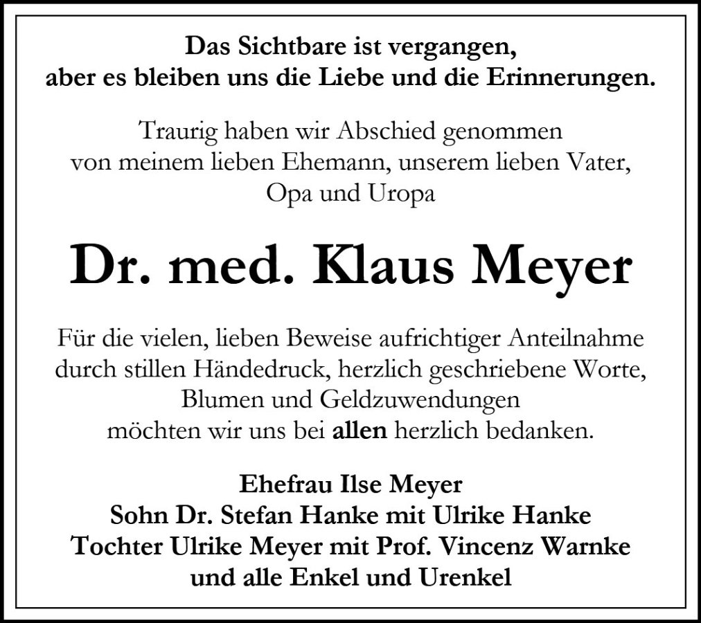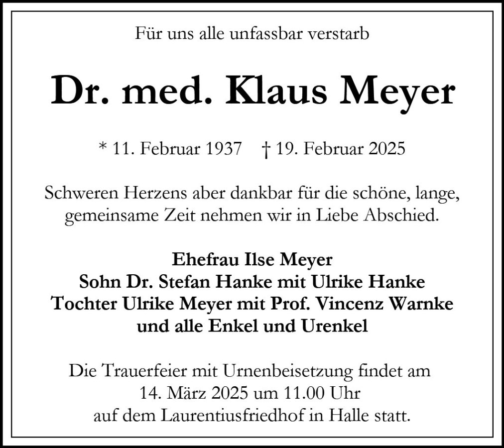Dr. Klaus Meyergestorben am 19. Februar 2025